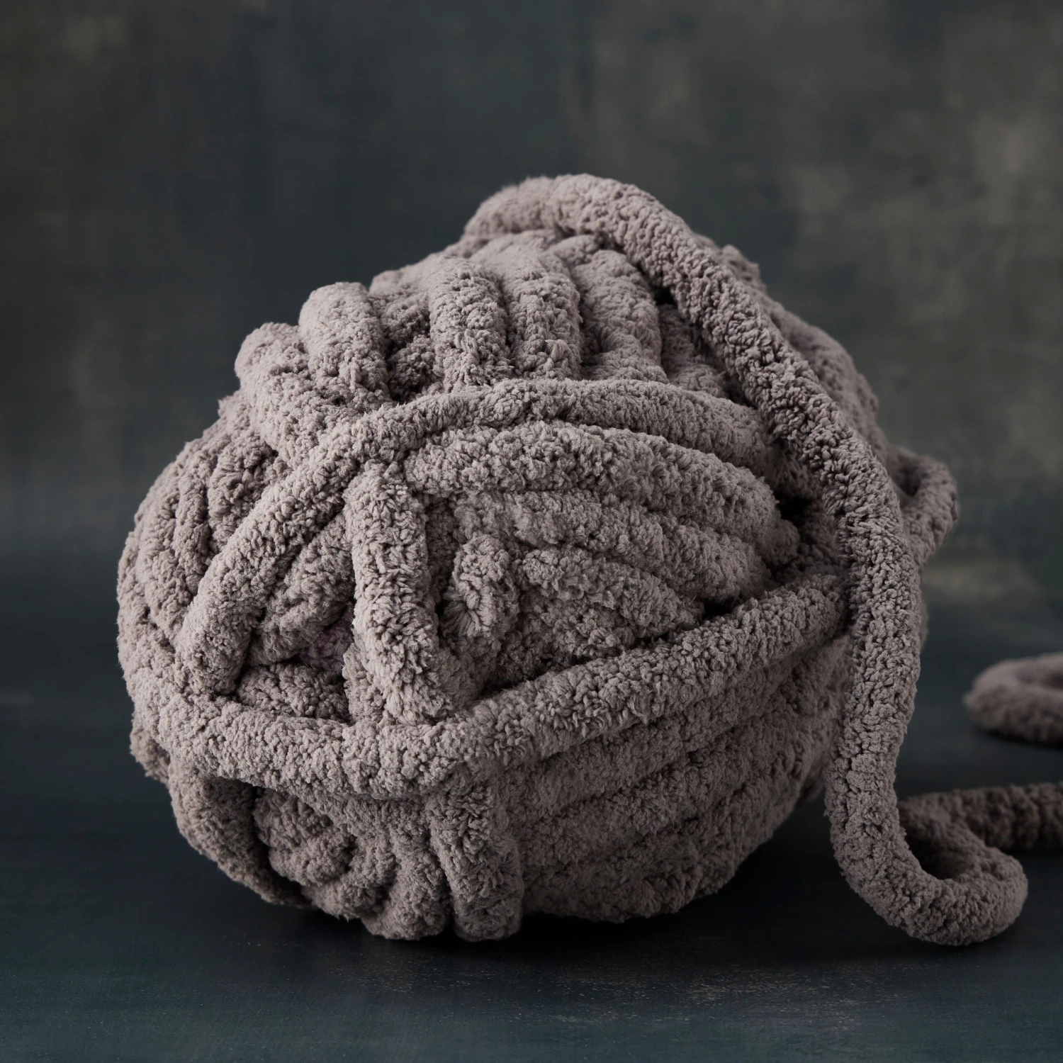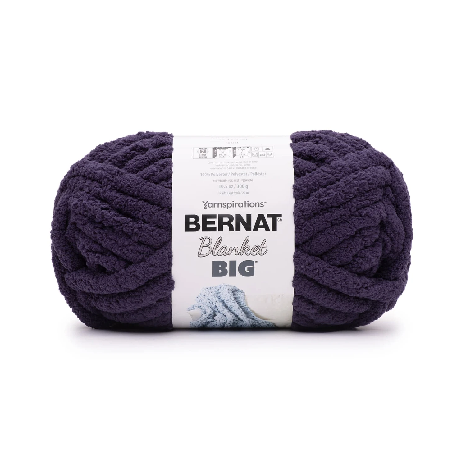 Bernat Blanket Big is the same cozy chenille-style blanket yarn that you love, now in a jumbo weight! The jumbo gauge of the yarn stitches up beautifully, for bigger blankets in no time. Available in a range of stylish shades to compliment your home décor, this extra thick yarn is great for home accessories like pillows, blankets and poufs!