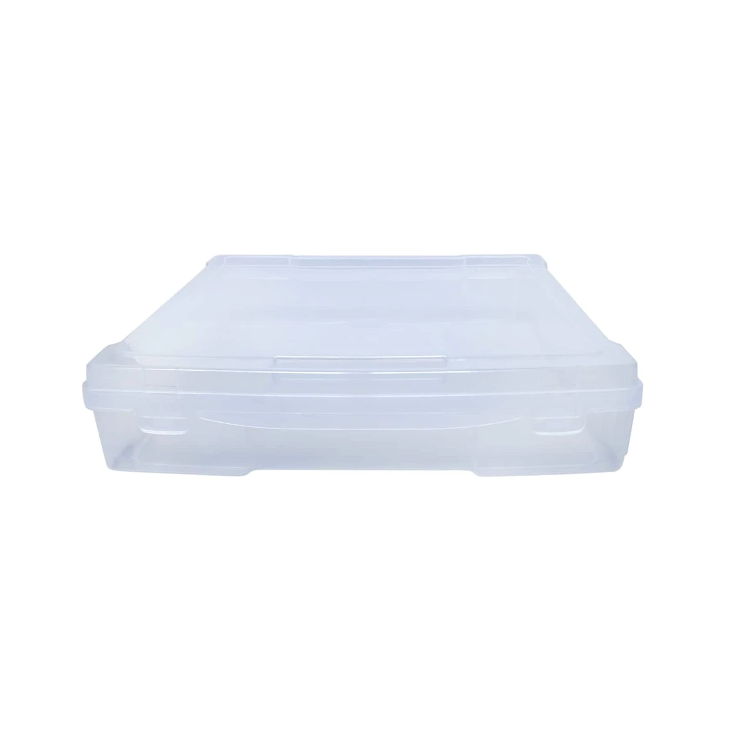 This clear plastic scrapbook storage case is perfect for keeping your clippings and supplies all in one place. It can be stored lying flat or on end to save space. The lid snaps into place, so you don’t have to worry about it popping open and spilling your markers, stickers, or tape. This case is sturdy and acid free, making it ideal for scrapbook paper storage, as it will keep even the most delicate of papers safe and well protected.