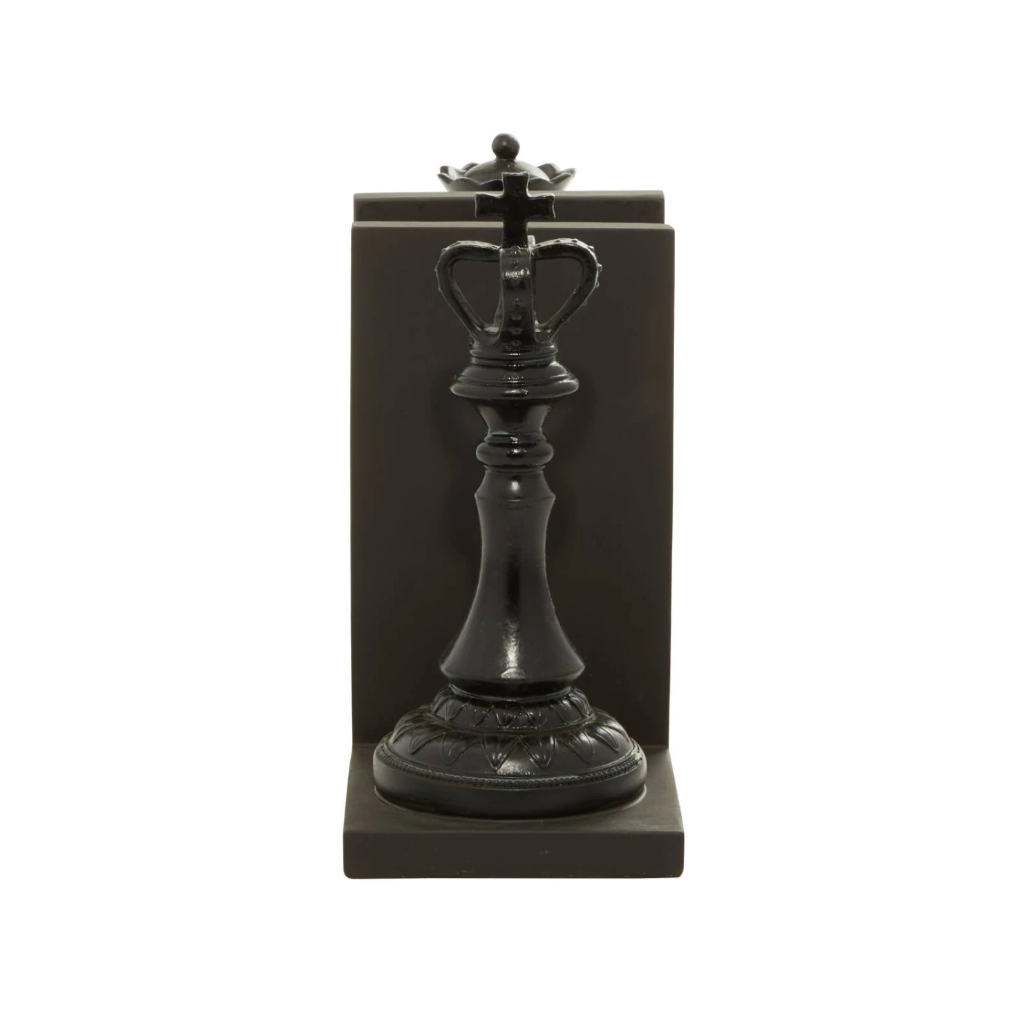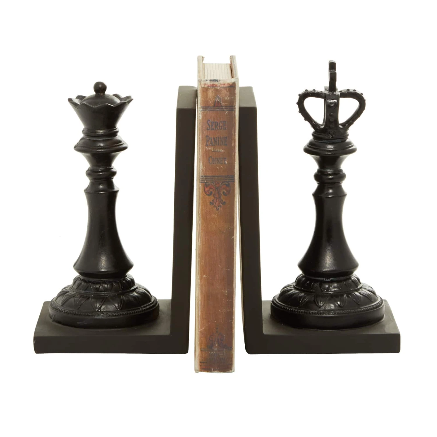 Transform your rustic and traditional-inspired bookshelves at home and in your office with the addition of this King and Queen chess piece bookend pair! This impressive home library/office décor set is made of polystone in a textured finish and L-shaped panels.