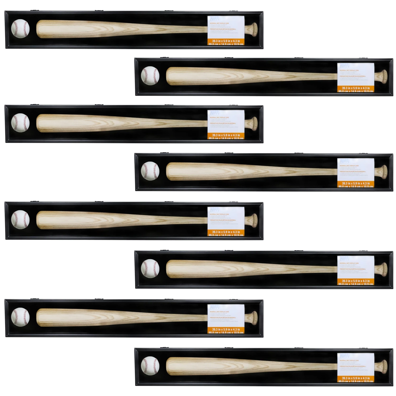 Proudly display baseball bats and baseballs in these sleek black cases. These cases fits up to a 34″ bat. Hang them on the wall before placing the baseball inside.