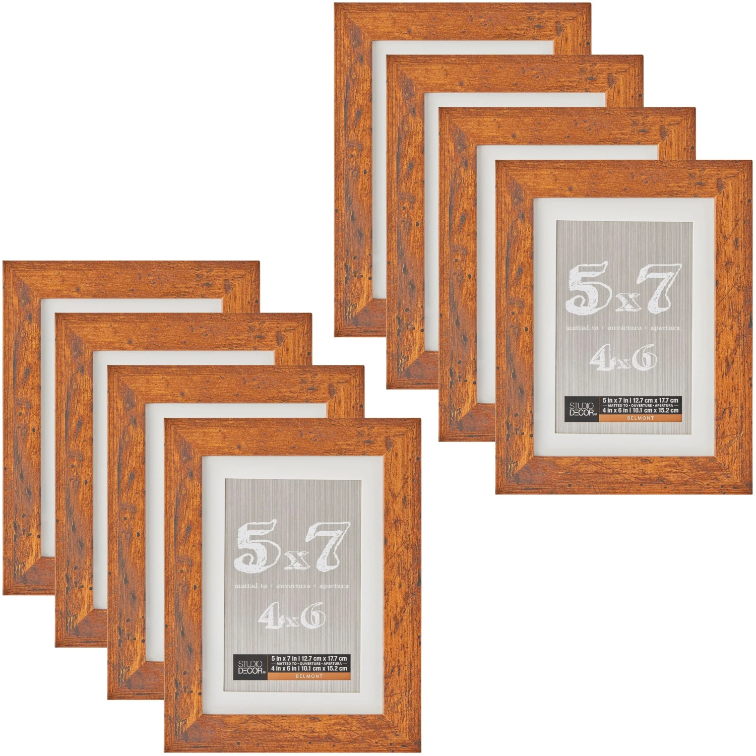 Display your favorite candid picture in this Belmont frame by Studio Décor. It has a thick glass layer to protect your artwork or photographs from dust. With a textured finish, this frame is perfect to add a rustic charm to your focal wall. The durable frame has a contemporary design and looks great in almost any décor. With its white mat, this frame is perfect for displaying a cherished photograph or artwork.