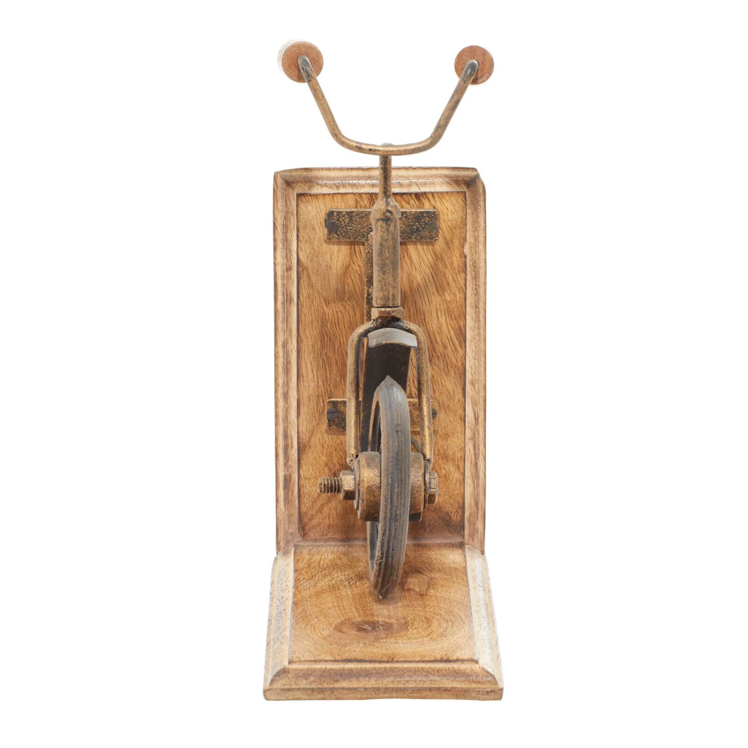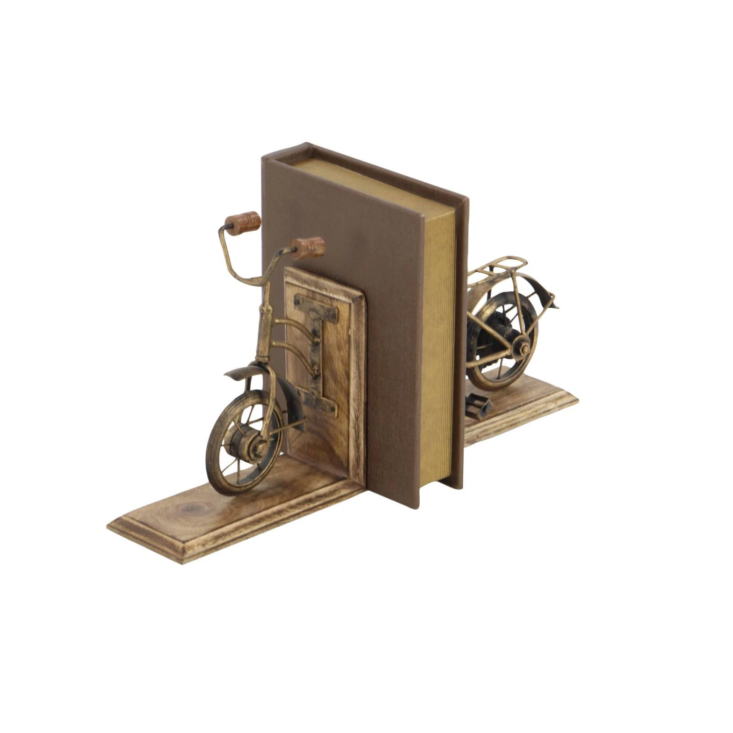 These 9″ Brass & Wood Vintage Bicycle Bookends are made to bring style and class to your rooms or office spaces. Featuring a decorative and functional design that lets them be used together as reliable bookstands anywhere in the house or separately as eye-catching desk accessories. Keep your books and magazines organized with these quirky and adorable bookends. Designed with black rubber stoppers at the base that prevent scratching furniture and table tops, as well as sliding around.