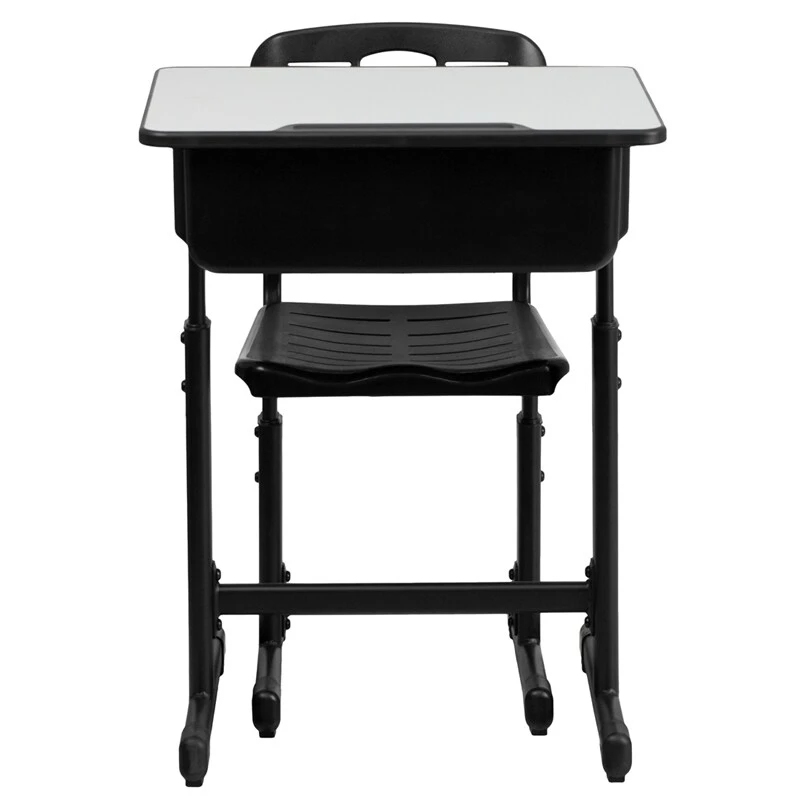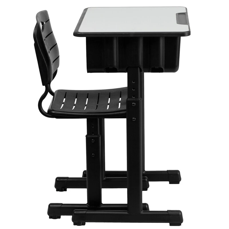 Adjustable Height Student Desk And Chair With Black Pedestal Frame