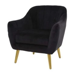 A luxurious black accent chair that is a match made in heaven for dark toned living spaces with dimmed lighting and stylish glass and metal decor pieces. Kick back and relax as you wine down from a long hard day at work. Great for adding additional seating and storage with a charming appeal. Designed with black rubber stoppers at the bottom that prevent scratching off surfaces, as well as sliding around. Item ships in 1 carton. Wipe clean with a dry cloth. Suitable for indoor use. Maximum weight limit is 250 lbs. Contemporary style.