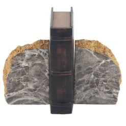 Metallic gold gives a glam flair to this set of faux thunder egg geode bookends. They will accentuate your earthy, natural décor alongside your crystals and plants! Placed on your office or library shelves, tables, or consoles, this bookend set is sure to bring glamorous style to your room.