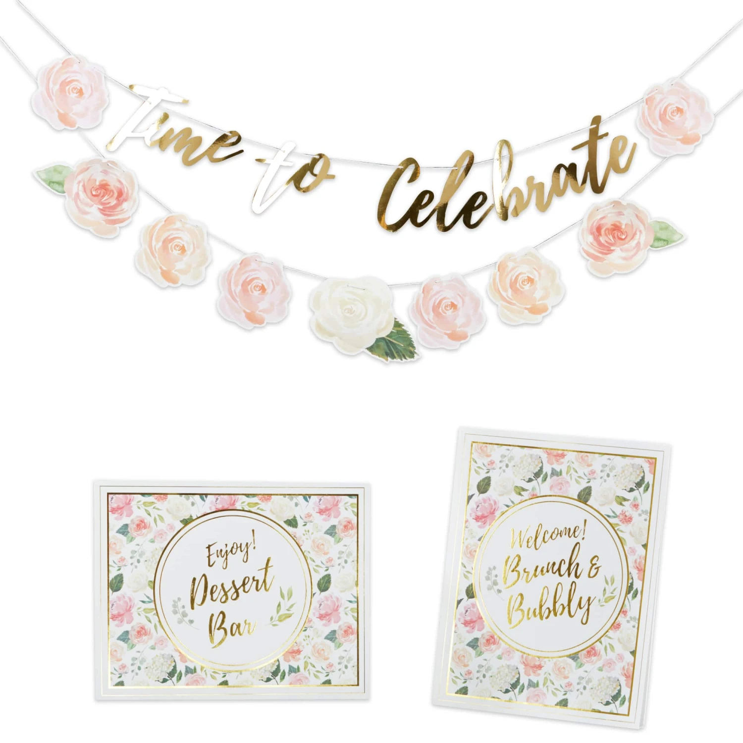 This Floral Brunch Party Kit from Kate Aspen settles your wedding décor needs with a party kit that all guests can enjoy. This brunch party kit can last all day and night; all you need is refreshments to keep your guests happy and having a blast at your celebration no matter the occasion! This kit is easy to set up at your wedding or baby shower so you don’t need to worry about your beverage station and a full bar. The signs and banner are informative to direct your guests to the right station.