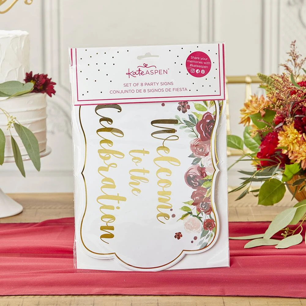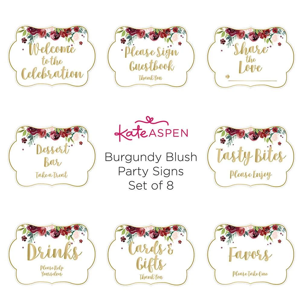 Guide your guests with ease with Kate Aspen’s Burgundy Blush Floral Party Décor Sign Kit. This party kit answers your friends and family’s most common questions like, “Where do the presents go?”, and “Where is the guest book?”, and ” What is the hashtag everyone is using?” all while you get to enjoy your guest and your party.