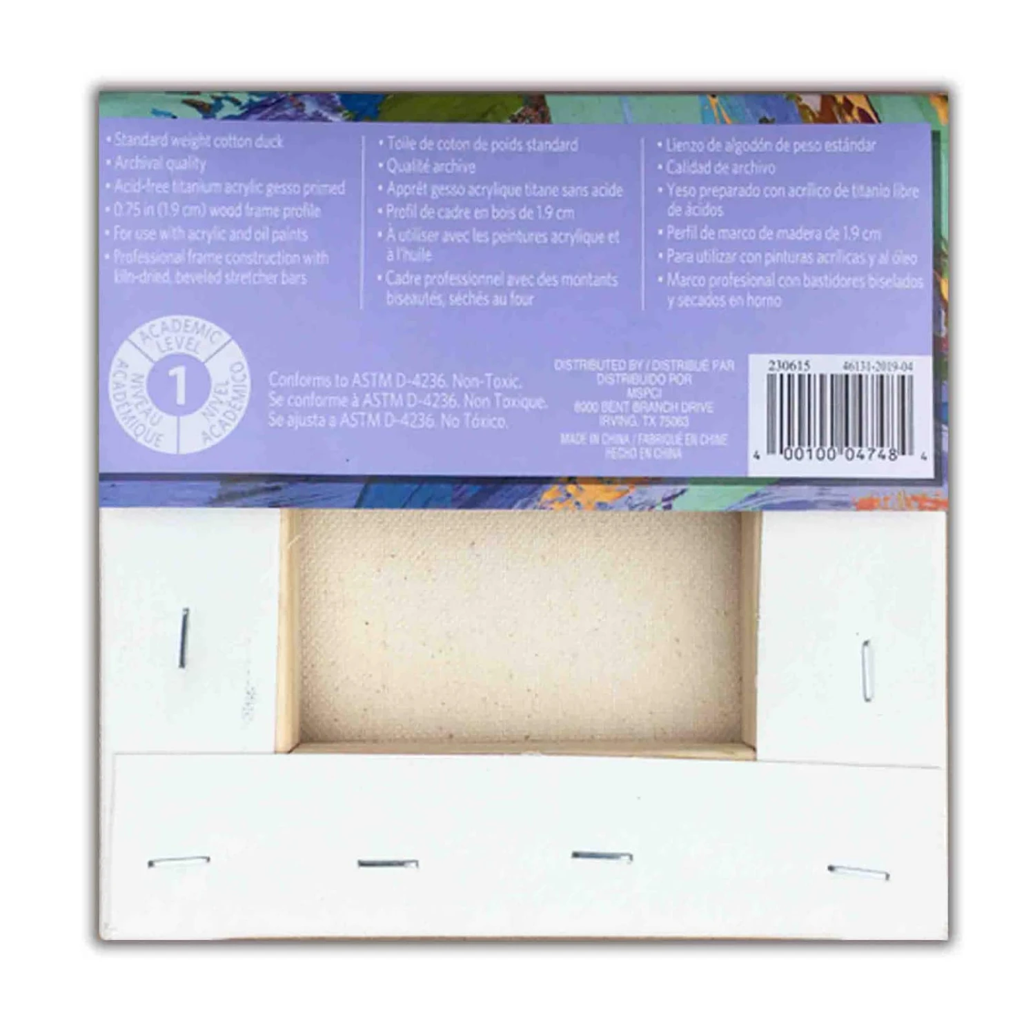 When students and novice artists are ready to paint on traditional canvas, they reach for this prepped back-stapled canvas. This top-quality canvas is ideal for use with acrylic and oil paints, featuring 100% cotton duck with an acid-free, titanium acrylic gesso primer. The canvas is stretched over a solid wood professional frame constructed with kiln-dried, beveled stretcher bars, so artists can create wonderful works of art that will last a lifetime.