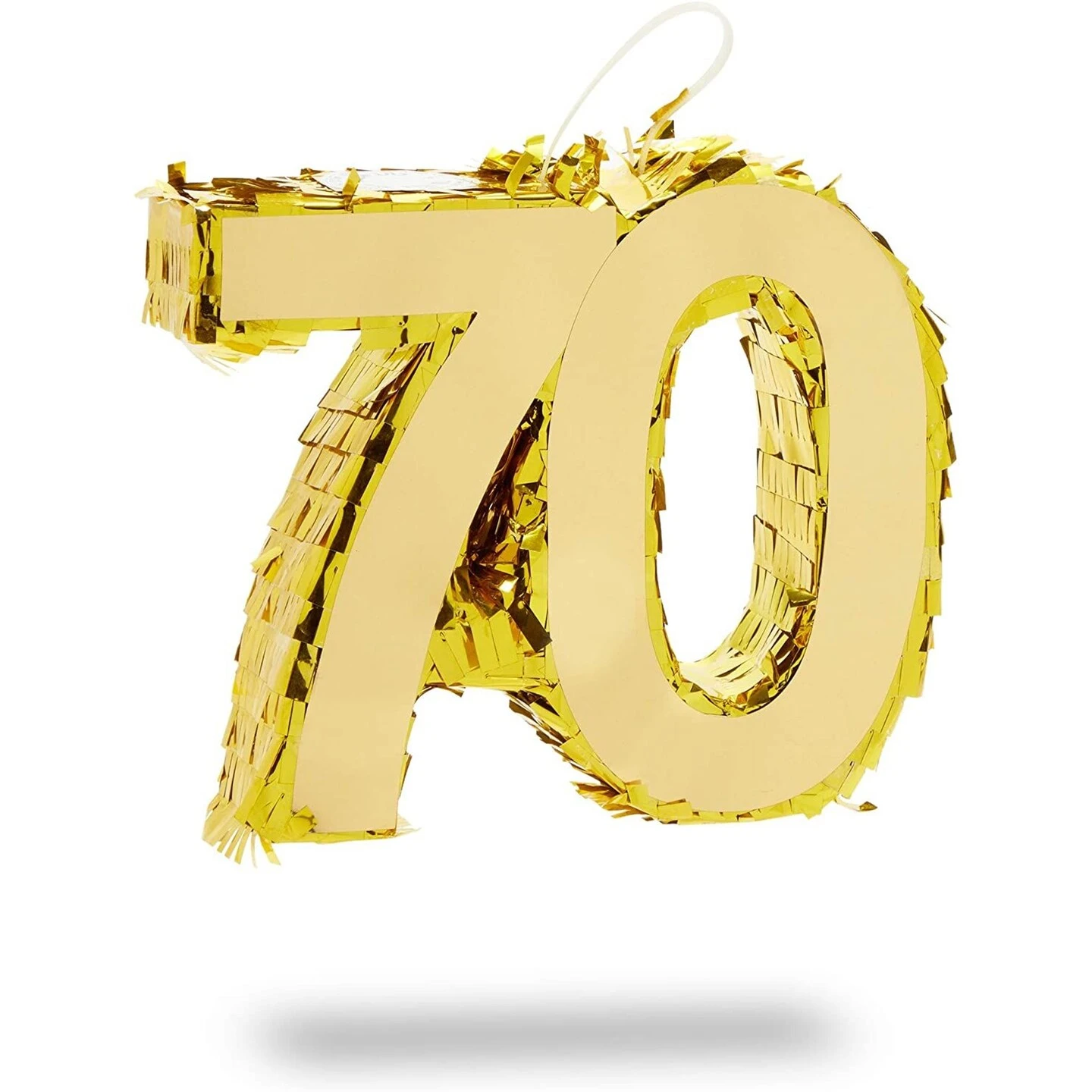 Easily hang this gold foil number 70 pinata from the ceiling or a tree branch with some string or rope. Elevate the 70th birthday party atmosphere with a fun activity and game, children and adults of all ages will enjoy their shot at breaking it open for some tasty and fun pinata fillers!